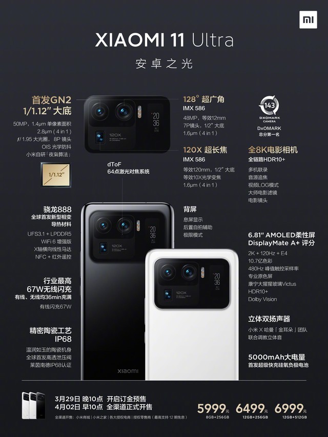 处理器骁龙 888、视频超级夜景、MIUI 12