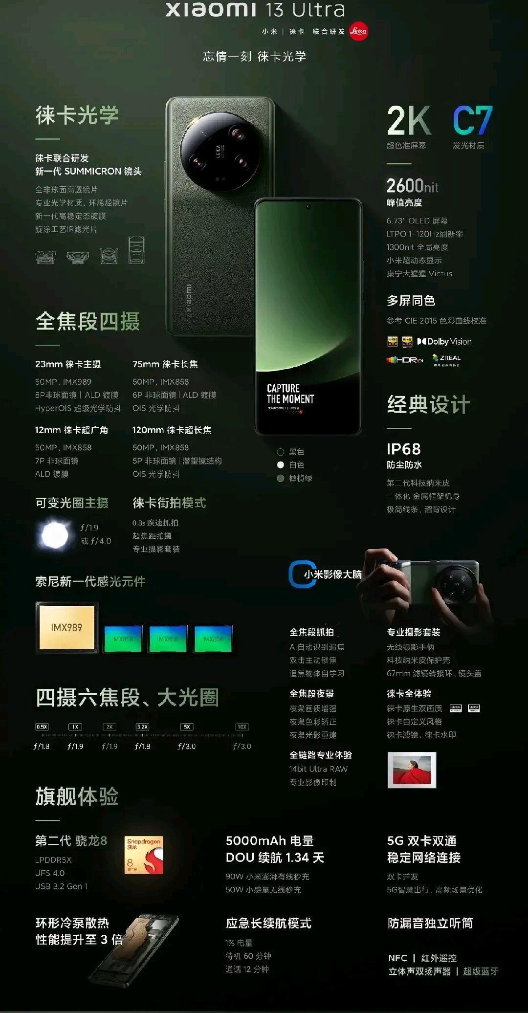 徕卡专业影像,后置5000万像素主镜头+1200万像素超广角镜头+1000万像素长焦镜头,前置3200万像素摄像头